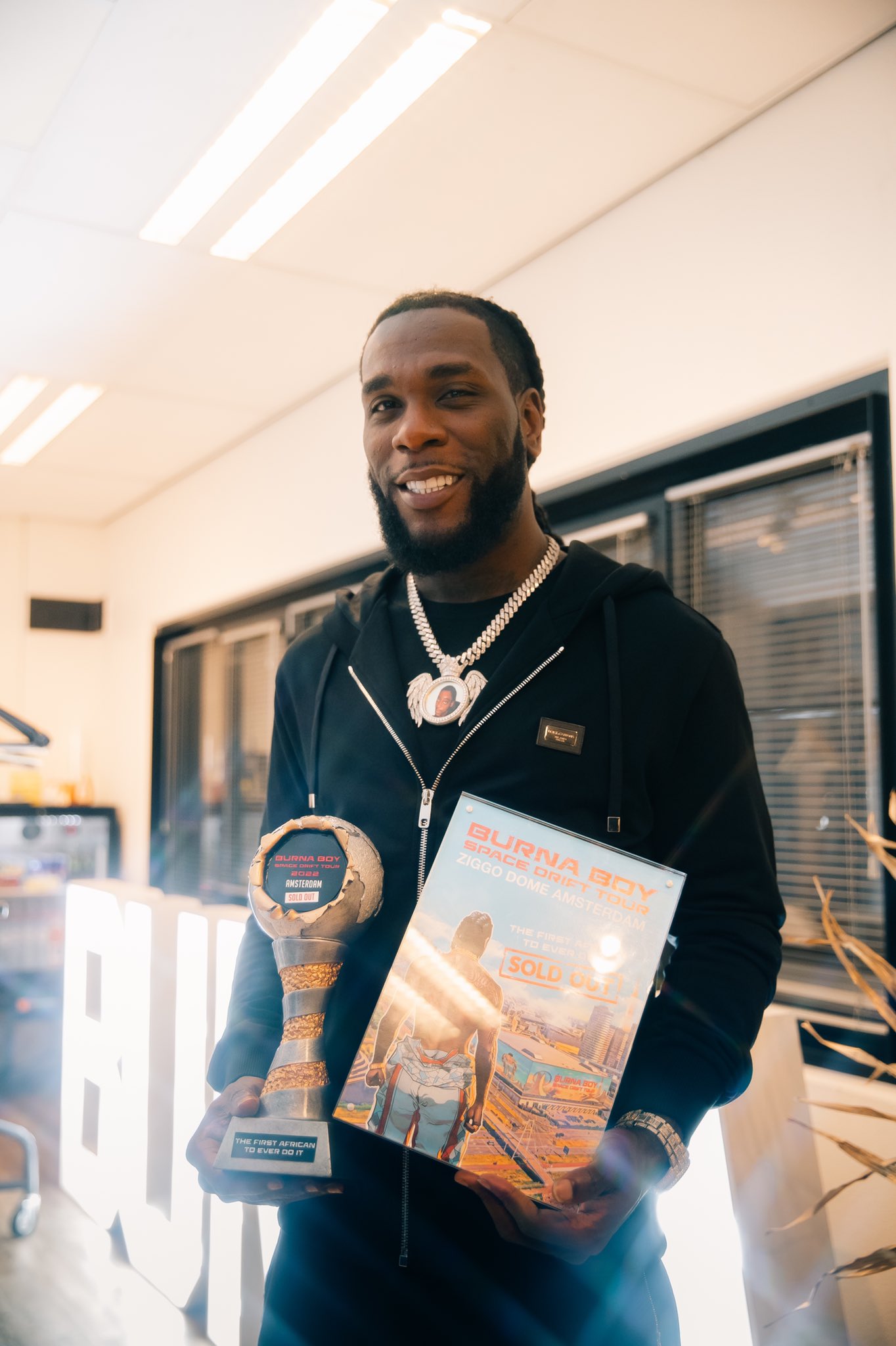 Burna Boy has recently received a plaque after he sold out a venue in The Netherlands.