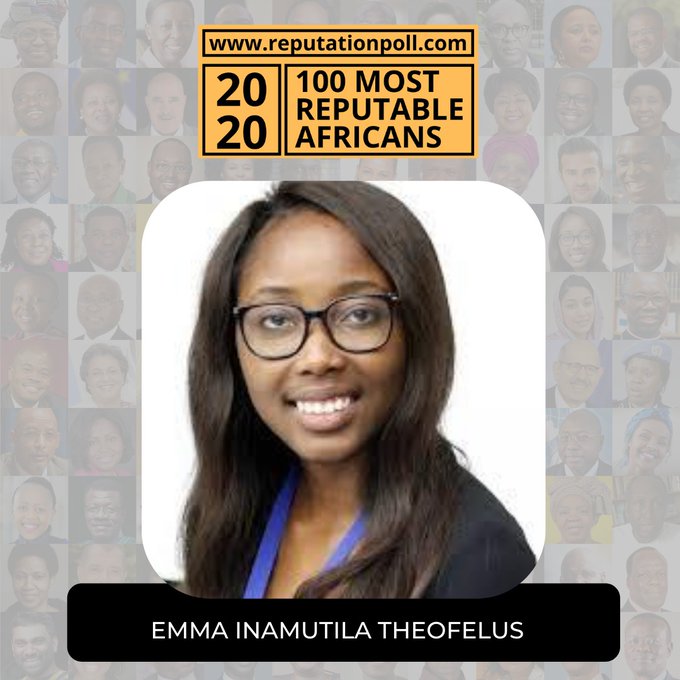 Reputation Poll International recently dropped its list of 100 Most Reputable Africans for 2020, which had 53 men and 47 women. Emma Inamutila Theofelus was ranked 35th on the list.