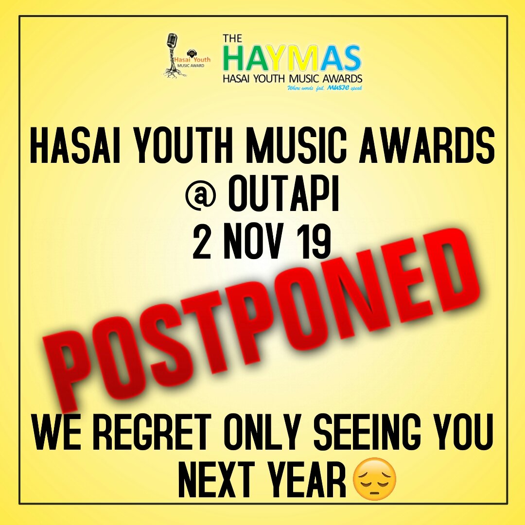 Hasai Youth Music Awards ( HAYMAs) is an initiative for the youth to recognize their artistic ways of life. Due to unavoidable circumstances, the Hasai Youth Music Awards scheduled initially for 2 November 2019 has been postponed to next year. The venue and the timing of the event remain the same and it is just the date that has been postponed. Meaning it is being postponed to 2nd of November 2020.